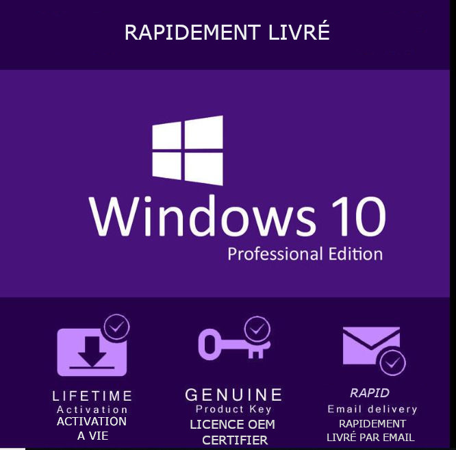 • Clé de produit professionnelle Windows 10 100 % authentique, une clé pour un ordinateur (peut être réutilisée plusieurs fois sur le même PC).